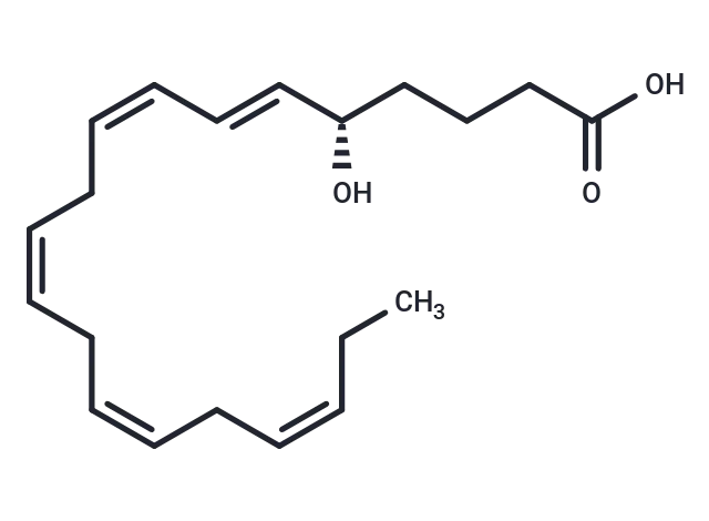– 5(S)-HEPE, an active metabolite of eicosapentaenoic acid (EPA), is produced via the action of 5-lipoxygenase (5-LO). This compound functions as an agonist for G protein-coupled receptor 119 (GPR119), promoting cAMP accumulation in CHO-K1 cells expressing human GPR119 at 10 µM concentration. Additionally, 5(S)-HEPE enhances glucose-stimulated insulin secretion from MING6 insulinoma pancreatic islets and glucagon-like peptide 1 (GLP-1) secretion from HuTu 80 adenocarcinoma cells at the same concentration. Notably, serum levels of 5(S)-HEPE are increased in hyperlipidemia patients.