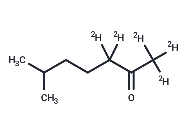 – 6-methyl-2-heptanone-d5 is a deuterated compound of 6-methyl-2-heptanone. 6-methyl-2-heptanone has a CAS number of 928-68-7.