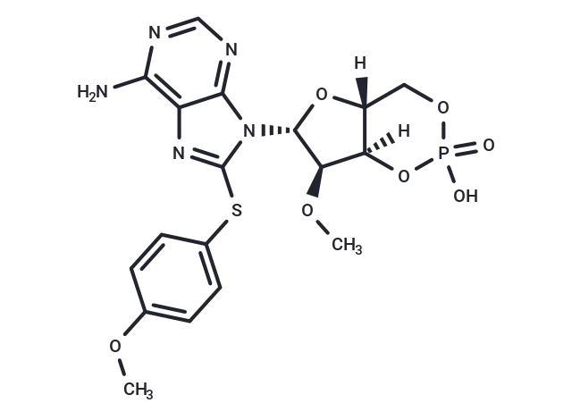 – 8-pMeOPT-2′-O-Me-cAMP is an analog of the signaling molecule cAMP and serves as an effective stimulator of the cAMP-activated exchange factors (Epac). Unlike cAMP, it does not activate PKA.
