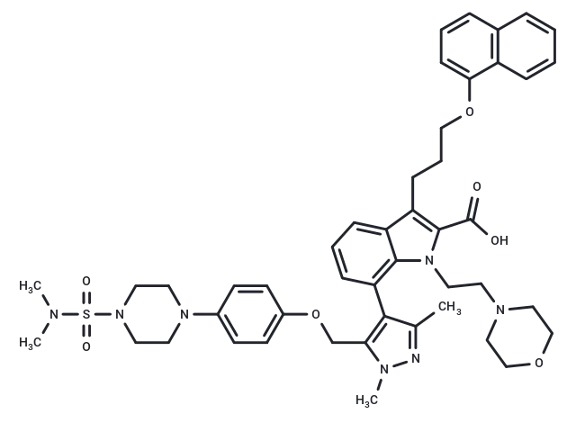 – C(CN1CCOCC1)N2C3=C(C=CC=C3C(CCCOC=4C5=C(C=CC4)C=CC=C5)=C2C(O)=O)C6=C(COC7=CC=C(C=C7)N8CCN(S(N(C)C)(=O)=O)CC8)N(C)N=C6C
