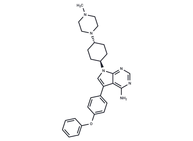 – NC1=C2C(=CN(C2=NC=N1)[C@H]3CC[C@@H](CC3)N4CCN(C)CC4)C5=CC=C(OC6=CC=CC=C6)C=C5