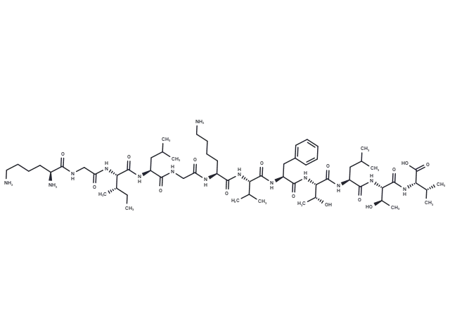 – CC[C@H](C)[C@H](NC(=O)CNC(=O)[C@@H](N)CCCCN)C(=O)N[C@@H](CC(C)C)C(=O)NCC(=O)N[C@@H](CCCCN)C(=O)N[C@@H](C(C)C)C(=O)N[C@@H](Cc1ccccc1)C(=O)N[C@@H]([C@@H](C)O)C(=O)N[C@@H](CC(C)C)C(=O)N[C@@H]([C@@H](C)O)C(=O)N[C@@H](C(C)C)C(O)=O |@@:84|