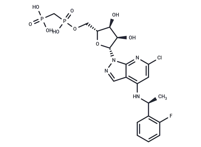 – N([C@@H](C)C1=C(F)C=CC=C1)C2=C3C(N(N=C3)[C@@H]4O[C@H](COP(CP(=O)(O)O)(=O)O)[C@@H](O)[C@H]4O)=NC(Cl)=C2