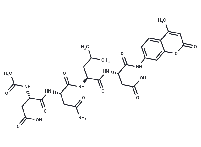 – Ac-DNLD-AMC is a fluorogenic caspase-3 substrate. Upon enzymatic cleavage by caspase-3, 7-amino-4-methylcoumarin (AMC) is released and its fluorescence can be used to quantify caspase-3 activity. AMC displays excitation/emission maxima of 340-360 and 440-460 nm, respectively.