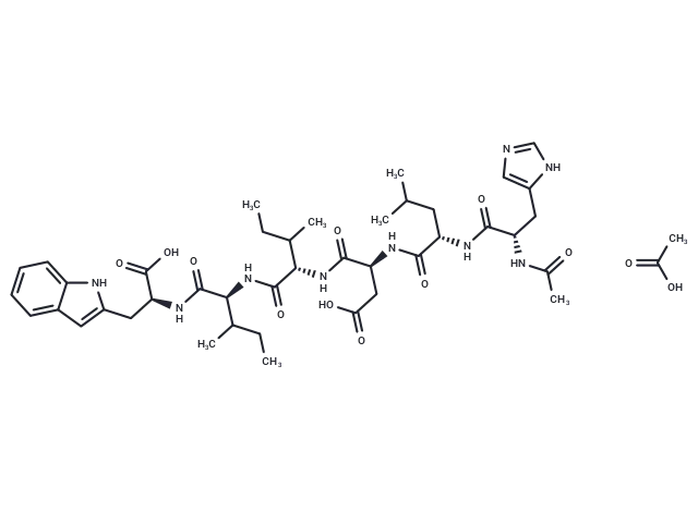 – CCC(C)[C@@H](C(=O)N[C@@H](C(C)CC)C(=O)N[C@@H](CC1=CC2=CC=CC=C2N1)C(=O)O)NC(=O)[C@H](CC(=O)O)NC(=O)[C@H](CC(C)C)NC(=O)[C@H](CC3=CN=CN3)NC(=O)C.CC(O)=O