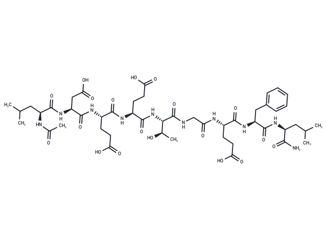 – Ac-LDEETGEFL-NH2 is a 9-mer peptide with a high binding affinity with Keap1 (KD2: 172 nM) and interacts in the Kelch binding pockets. Ac-LDEETGEFL-NH2 can be applied as a probe after being linked to FITC and used as a template in studies about KEAP1/NRF2 inhibitors.