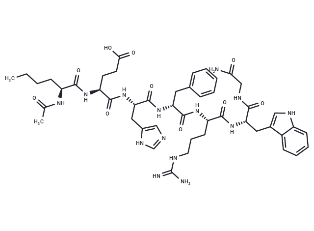 – Ac-[Nle4,D-Phe7]-α-MSH (4-10)-NH2, a melanotropin derivative and melanocyte-stimulating hormone, activates tyrosinase and demonstrates a thermoregulatory effect in rat models [1][2].