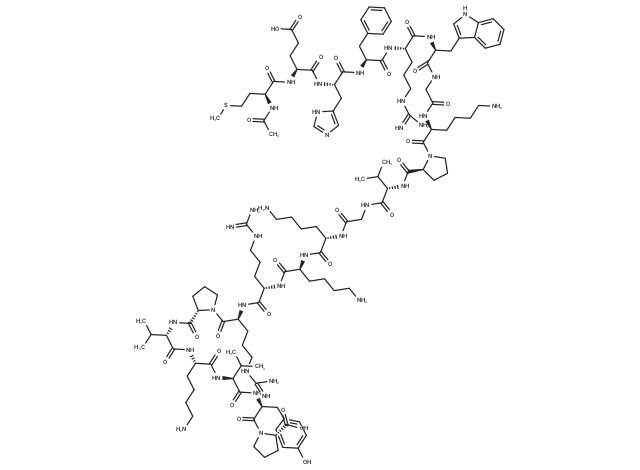 – Acetyl-ACTH (4-24) (human, bovine, rat), a proopiomelanocortin (POMC) peptide fragment, functions as an agonist at the MC-1 receptor [1]. This compound encompasses a sequence present in adrenocorticotrophin (ACTH), the precursor for α-MSH, illustrating its significant role in the POMC peptide family.