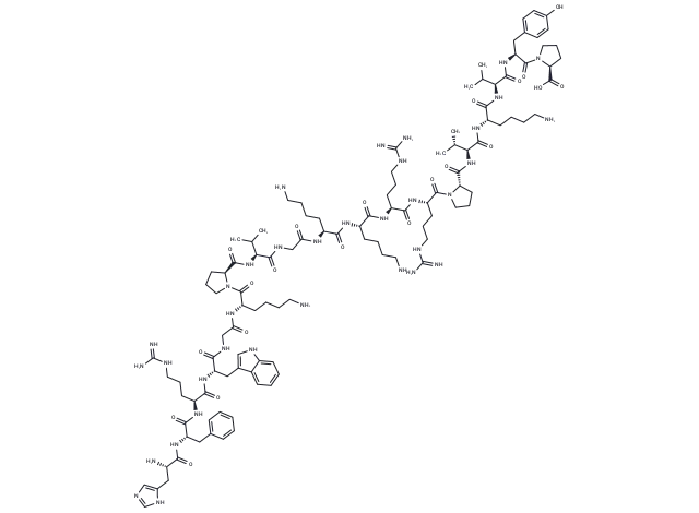 – C([C@H](NC([C@@H](NC([C@H](CC1=CC=CC=C1)NC([C@H](CC2=CN=CN2)N)=O)=O)CCCNC(=N)N)=O)C(NCC(N[C@H](C(=O)N3[C@H](C(N[C@H](C(NCC(N[C@H](C(N[C@H](C(N[C@H](C(N[C@H](C(=O)N4[C@H](C(N[C@H](C(N[C@H](C(N[C@H](C(N[C@H](C(=O)N5[C@H](C(O)=O)CCC5)CC6=CC=C(O)C=C6)=O)C(C)C)=O)CCCCN)=O)[C@@H](C)C)=O)CCC4)CCCNC(=N)N)=O)CCCNC(=N)N)=O)CCCCN)=O)CCCCN)=O)=O)C(C)C)=O)CCC3)CCCCN)=O)=O)C=7C=8C(NC7)=CC=CC8