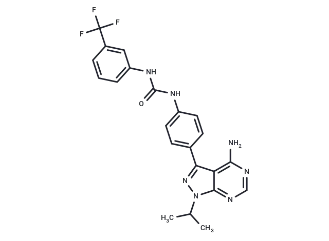 – CC(C)n1nc(-c2ccc(NC(=O)Nc3cccc(c3)C(F)(F)F)cc2)c2c(N)ncnc12