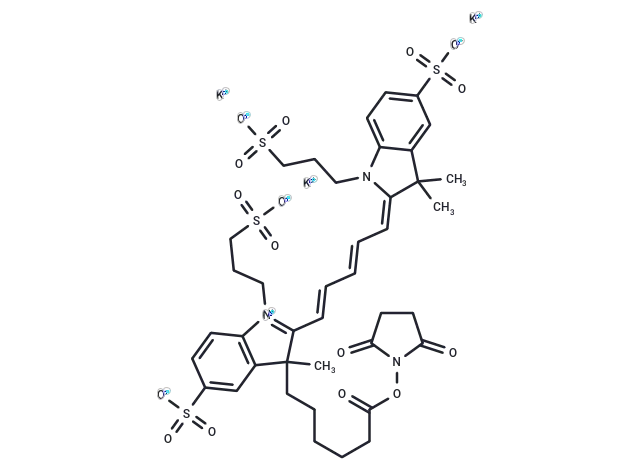 – O=C(CCCCCC1(C)C2=C([N+](CCCS(=O)([O-])=O)=C1/C=C/C=C/C=C3N(CCCS(=O)([O-])=O)C4=CC=C(S(=O)([O-])=O)C=C4C3(C)C)C=CC(S(=O)([O-])=O)=C2)ON5C(CCC5=O)=O.[K+].[K+].[K+]