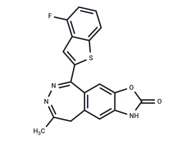 – Afizagabar (S44819) is a first-in-class, competitive, and selective antagonist at the GABA-binding site of the α5-GABAAR, with an IC50 of 585 nM for α5β2γ2 and a Ki of 66 nM for α5β3γ2. It enhances hippocampal synaptic plasticity and exhibits pro-cognitive efficacy [1].