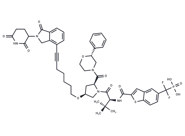 – C(#CCCCCCO[C@H]1C[C@@H](C(=O)N2C[C@H](OCC2)C3=CC=CC=C3)N(C([C@@H](NC(=O)C4=CC=5C(S4)=CC=C(C(P(=O)(O)O)(F)F)C5)[C@@](C)(C)C)=O)C1)C6=C7C(C(=O)N(C7)C8C(=O)NC(=O)CC8)=CC=C6