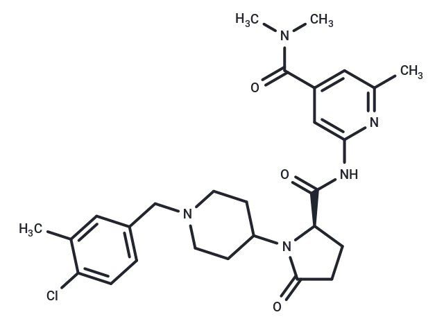 – CN(C)C(=O)c1cc(C)nc(NC(=O)[C@H]2CCC(=O)N2C2CCN(Cc3ccc(Cl)c(C)c3)CC2)c1
