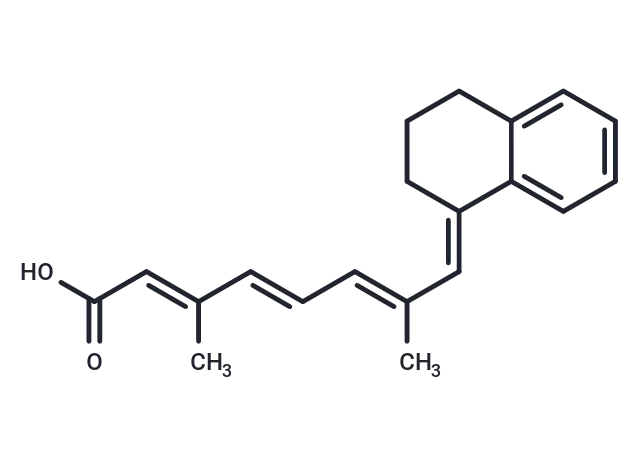 – (all-E)-UAB30 (UAB30) is a selective agonist for the retinoid X receptor (RXR). It exhibits antiproliferative activity against MyLa, HuT 78, and HH cell lines, with IC50 values of 34.7, 5.1, and 22.4 μM, respectively.