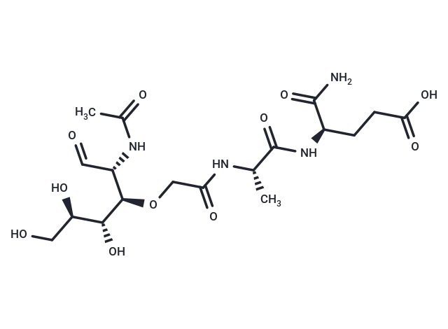 – Almurtide (nor-MDP), a derivative of muramyl dipeptide, exhibits anti-inflammatory and anti-tumor properties. It demonstrates protective effects in mice against infections caused by Pseudomonas aeruginosa when administered intraperitoneally and Candida albicans when administered intravenously. Furthermore, Almurtide has been shown to inhibit the carcinogenic Friend leukemia virus [1] [2] [3].
