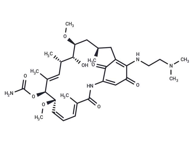 – Alvespimycin (17-DMAG) is a potent Hsp90 inhibitor that binds to Hsp90, exhibiting potential anticancer activity.