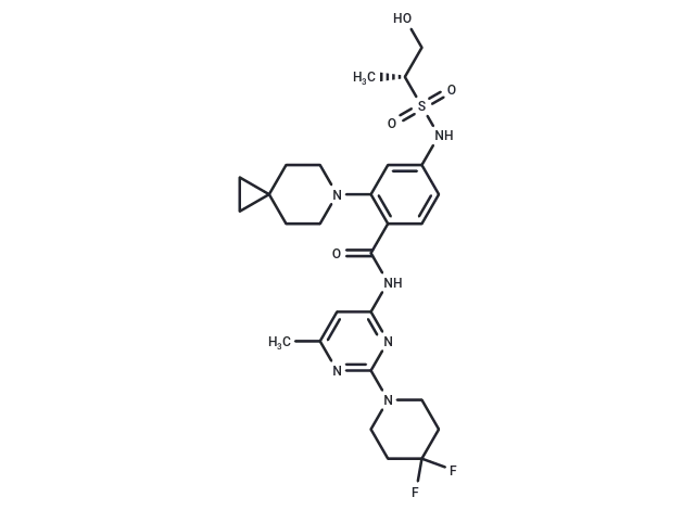 – C(NC1=NC(=NC(C)=C1)N2CCC(F)(F)CC2)(=O)C3=C(N4CCC5(CC5)CC4)C=C(NS([C@@H](CO)C)(=O)=O)C=C3