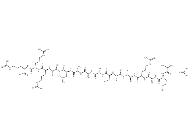– N=C(N)NCCC[C@@H](C(O)=O)NC([C@H](CCCNC(N)=N)NC([C@H](CCCNC(N)=N)NC([C@H](C)NC([C@H](CC(C)C)NC([C@H](C)NC([C@H](C)NC([C@H](C)NC([C@H](CO)NC([C@H](C)NC([C@H](C)NC([C@H](CCCNC(N)=N)NC([C@H](C)NC([C@H](CCSC)NC([C@H](C)N)=O)=O)=O)=O)=O)=O)=O)=O)=O)=O)=O)=O)=O)=O.CC(O)=O