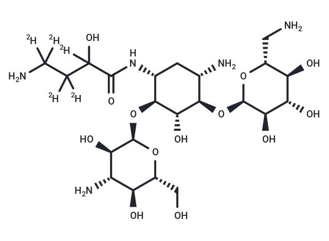 – Amikacin-d5 is a deuterated compound of Amikacin. Amikacin has a CAS number of 37517-28-5. Amikacin is a broad-spectrum antibiotic derived from kanamycin.