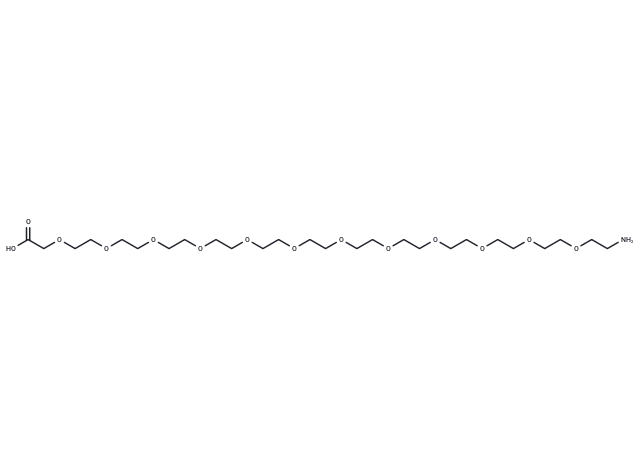 – Amino-PEG12-CH2COOH, a PEG-based linker for PROTACs, joins two essential ligands crucial for forming PROTAC molecules and enables selective protein degradation by leveraging the ubiquitin-proteasome system within cells.
