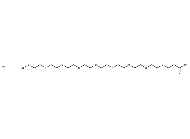 – Aminooxy-PEG8-acid is a PEG-based linker for PROTACs, facilitating the conjugation of two essential ligands critical for PROTAC molecule formation, thereby enabling selective protein degradation via the ubiquitin-proteasome system within cells.