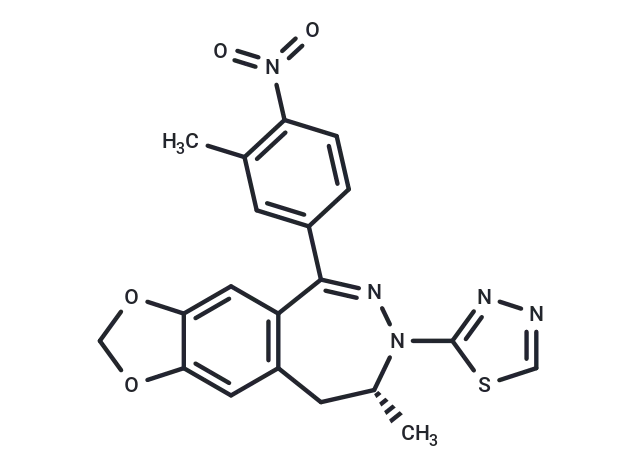– C[C@@H]1CC2=C(C(=NN1C3=NN=CS3)C4=CC(C)=C(N(=O)=O)C=C4)C=C5C(=C2)OCO5