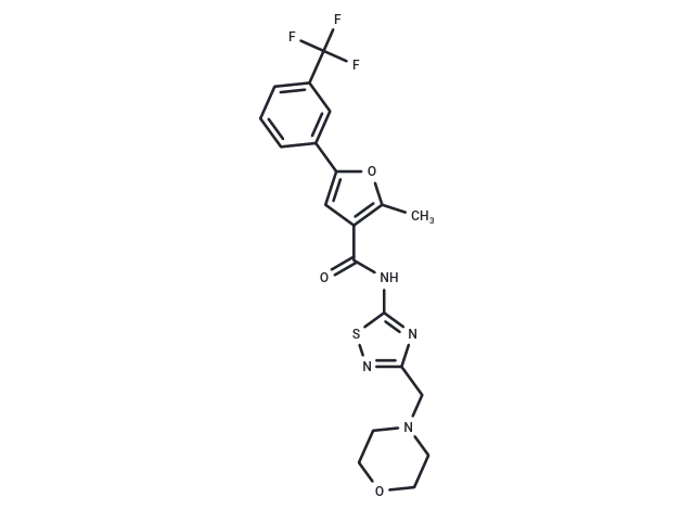 – O=C(NC1=NC(=NS1)CN2CCOCC2)C=3C=C(OC3C)C=4C=CC=C(C4)C(F)(F)F