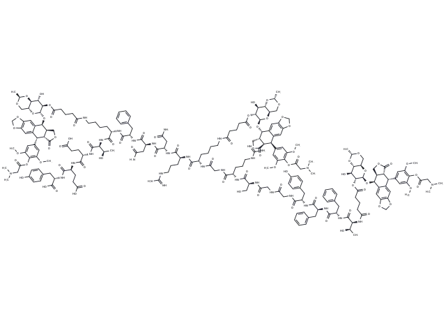 – C[C@@H]1OC[C@@H]2[C@@H](O1)[C@@H]([C@H]([C@@H](O2)O[C@H]3[C@H]4COC(=O)[C@@H]4[C@@H](C5=CC6=C(C=C35)OCO6)C7=CC(=C(C(=C7)OC)OC(=O)CN(C)C)OC)OC(=O)CCCC(=O)NCCCC[C@@H](C(=O)N[C@@H](CCCNC(=N)N)C(=O)N[C@@H](CC(=O)N)C(=O)N[C@@H](CC(=O)N)C(=O)N[C@@H](CC8=CC=CC=C8)C(=O)N[C@@H](CCCCNC(=O)CCCC(=O)O[C@@H]9[C@H]([C@H]1[C@@H](CO[C@H](O1)C)O[C@H]9O[C@H]1[C@H]2COC(=O)[C@@H]2[C@@H](C2=CC3=C(C=C12)OCO3)C1=CC(=C(C(=C1)OC)OC(=O)CN(C)C)OC)O)C(=O)N[C@@H]([C@@H](C)O)C(=O)N[C@@H](CCC(=O)O)C(=O)N[C@@H](CCC(=O)O)C(=O)N[C@@H](CC1=CC=C(C=C1)O)C(=O)O)NC(=O)CNC(=O)[C@H](CCCNC(=N)N)NC(=O)[C@H](CO)NC(=O)CNC(=O)CNC(=O)[C@H](CC1=CC=C(C=C1)O)NC(=O)[C@H](CC1=CC=CC=C1)NC(=O)[C@H](CC1=CC=CC=C1)NC(=O)[C@H]([C@@H](C)O)NC(=O)CCCC(=O)O[C@@H]1[C@H]([C@H]2[C@@H](CO[C@H](O2)C)O[C@H]1O[C@H]1[C@H]2COC(=O)[C@@H]2[C@@H](C2=CC3=C(C=C12)OCO3)C1=CC(=C(C(=C1)OC)OC(=O)CN(C)C)OC)O)O