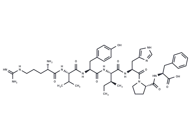 – CC[C@H](C)[C@H](NC(=O)[C@H](Cc1ccc(O)cc1)NC(=O)[C@@H](NC(=O)[C@@H](N)CCCNC(N)=N)C(C)C)C(=O)N[C@@H](Cc1c[nH]cn1)C(=O)N1CCC[C@H]1C(=O)N[C@@H](Cc1ccccc1)C(O)=O