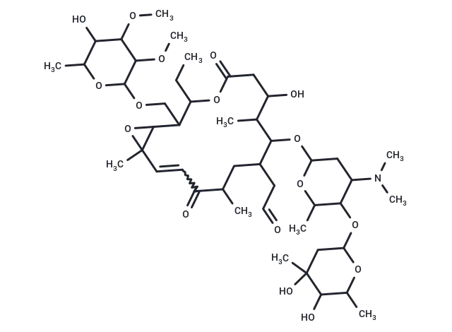 – O=CCC1CC(C(=O)C=CC2(OC2C(COC3OC(C)C(O)C(OC)C3OC)C(OC(=O)CC(O)C(C)C1OC4OC(C)C(OC5OC(C)C(O)C(O)(C)C5)C(N(C)C)C4)CC)C)C