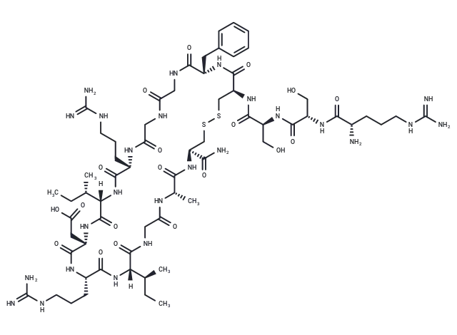 – C([C@@H]1NC(=O)[C@@H](NC([C@@H](NC([C@@H](NC([C@H](CCCNC(=N)N)N)=O)CO)=O)CO)=O)CSSC[C@@H](C(N)=O)NC(=O)[C@H](C)NC(=O)CNC(=O)[C@]([C@H](CC)C)(NC(=O)[C@H](CCCNC(=N)N)NC(=O)[C@H](CC(O)=O)NC(=O)[C@]([C@H](CC)C)(NC(=O)[C@H](CCCNC(=N)N)NC(=O)CNC(=O)CNC1=O)[H])[H])C2=CC=CC=C2