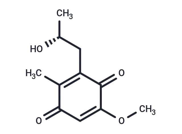 – Anserinone B, a benzoquinone with antifungal and antibacterial properties, inhibits radial growth by 50% and 37% against S. fimicola and A. furfuraceus, respectively. Additionally, it demonstrates moderate cytotoxicity across the National Cancer Institute’s 60 human tumor cell lines, with a GI 50 value of 4.4 µg/mL.