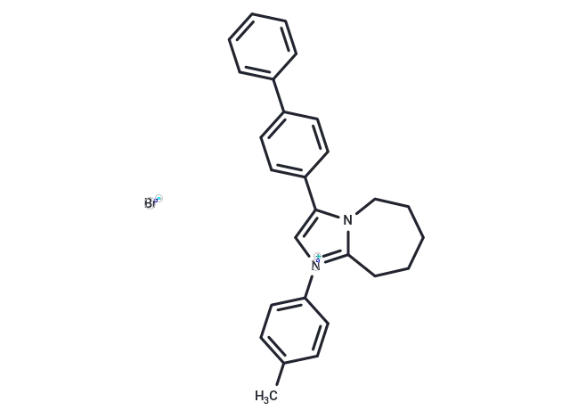 – [Br-].C=1C=CC(=CC1)C=2C=CC(=CC2)C3=C[N+](C=4C=CC(=CC4)C)=C5N3CCCCC5