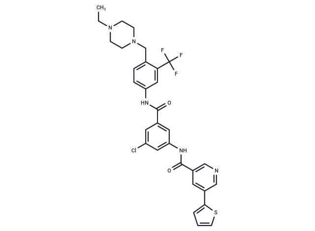 – O=C(NC1=CC(Cl)=CC(=C1)C(=O)NC2=CC=C(C(=C2)C(F)(F)F)CN3CCN(CC)CC3)C4=CN=CC(=C4)C=5SC=CC5