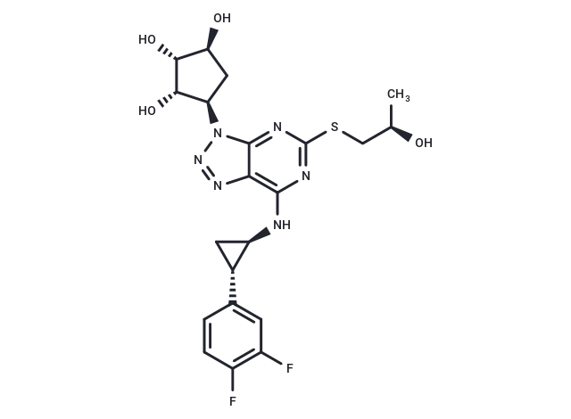 – N(C1=C2C(N(N=N2)[C@H]3[C@H](O)[C@H](O)[C@@H](O)C3)=NC(SC[C@@H](C)O)=N1)[C@H]4[C@@H](C4)C5=CC(F)=C(F)C=C5