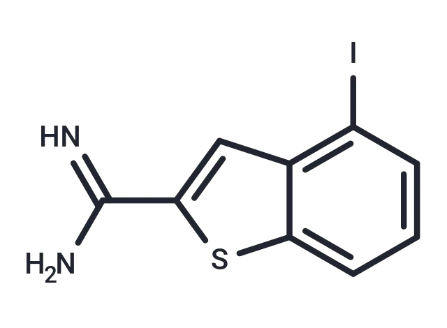 – APC-6860 is a trypsin-like serine protease inhibitor with ( k_i ) values of 0.21, 0.44, 1.5, 16.8, 20, and 30 μM for uPA, trypsin, tryptase, tPA, thrombin, and factor Xa, respectively. It exhibits a selectivity ratio for tPA versus uPA of 80 and has ( k_i ) values of 0.1 and 0.082 μM for human and murine urokinases, respectively. APC-6860 can be utilized for cancer research.