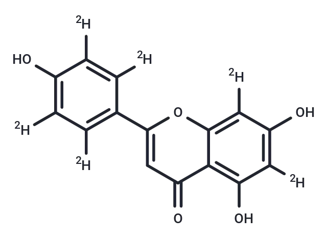 – Apigenin-d6 is a deuterated compound of Apigenin. Apigenin has a CAS number of 520-36-5. Chamomile is an aromatic oil extracted from the flowers or leaves of the daisy-like plants. Extracts, oils and teas made from chamomile are used for its soothing qualities as a sedative, mild analgesic and sleep medication. Chamomile has not been implicated in causing serum enzyme elevations or clinically apparent liver injury.