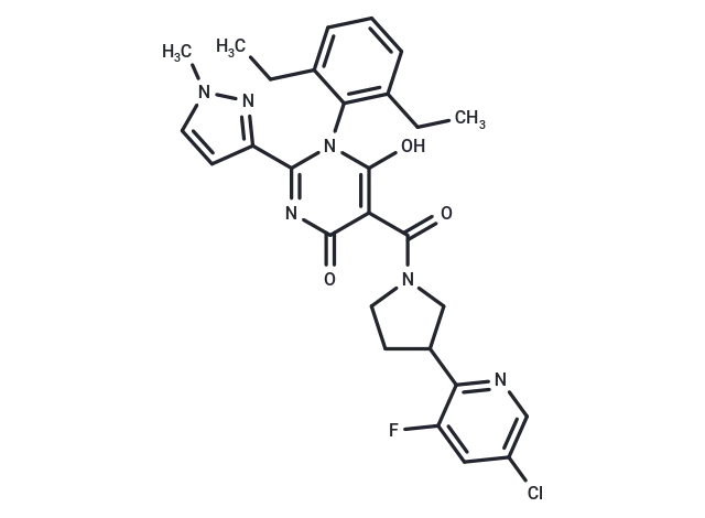 – CCc1cccc(CC)c1-n1c(O)c(C(=O)N2CCC(C2)c2ncc(Cl)cc2F)c(=O)nc1-c1ccn(C)n1