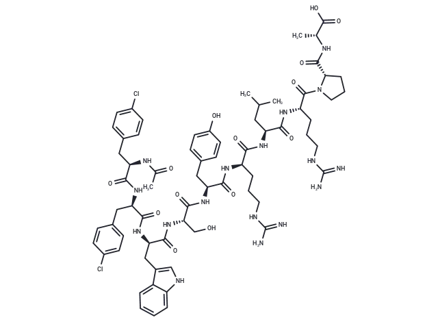 – C([C@@H](NC([C@@H](CC1=CC=C(Cl)C=C1)NC([C@@H](CC2=CC=C(Cl)C=C2)NC(C)=O)=O)=O)C(N[C@H](C(N[C@@H](CC3=CC=C(O)C=C3)C(N[C@@H](C(N[C@H](C(N[C@H](C(=O)N4[C@H](C(N[C@@H](C(O)=O)C)=O)CCC4)CCCNC(=N)N)=O)CC(C)C)=O)CCCNC(=N)N)=O)=O)CO)=O)C=5C=6C(NC5)=CC=CC6
