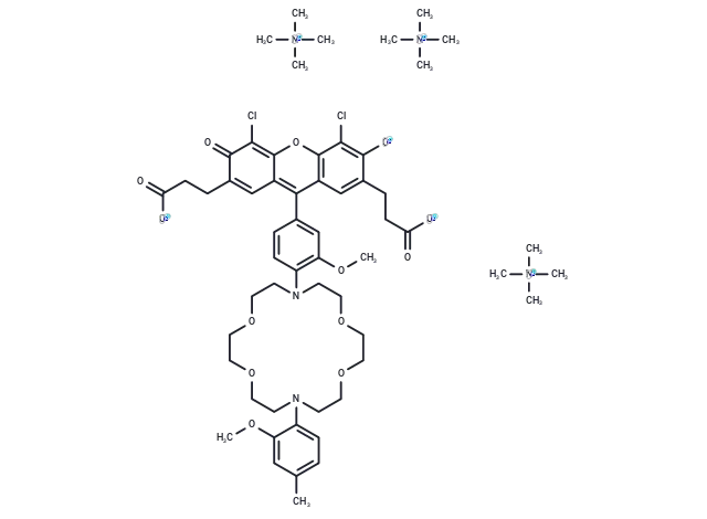 – C[N+](C)(C)C.C[N+](C)(C)C.O=C(CCC1=CC2=C(C3=CC(OC)=C(N4CCOCCOCCN(CCOCCOCC4)C5=CC=C(C)C=C5OC)C=C3)C6=C(C(Cl)=C(C(CCC([O-])=O)=C6)[O-])OC2=C(C1=O)Cl)[O-].C[N+](C)(C)C