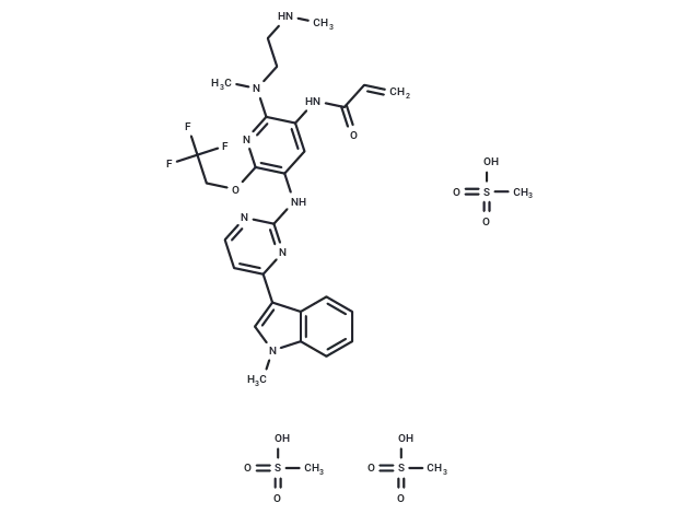 – O=C(NC1=CC(NC2=NC(C3=CN(C)C4=C3C=CC=C4)=CC=N2)=C(OCC(F)(F)F)N=C1N(CCNC)C)C=C.O=S(O)(C)=O.O=S(O)(C)=O.O=S(O)(C)=O