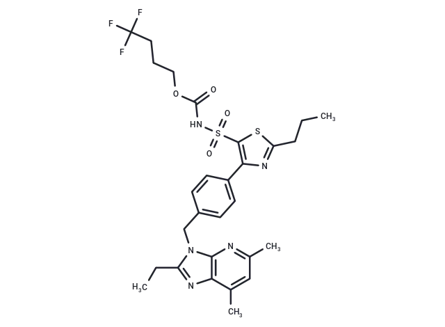 – CCCC1=NC(=C(S1)S(=O)(=O)NC(=O)OCCCC(F)(F)F)C2=CC=C(C=C2)CN3C(=NC4=C3N=C(C=C4C)C)CC