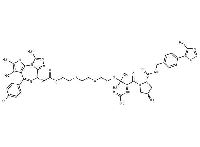– CC=1C2=C(N3C([C@H](CC(NCCOCCOCCSC([C@@H](C(=O)N4[C@H](C(NCC5=CC=C(C=C5)C6=C(C)N=CS6)=O)C[C@@H](O)C4)NC(C)=O)(C)C)=O)N=C2C7=CC=C(Cl)C=C7)=NN=C3C)SC1C