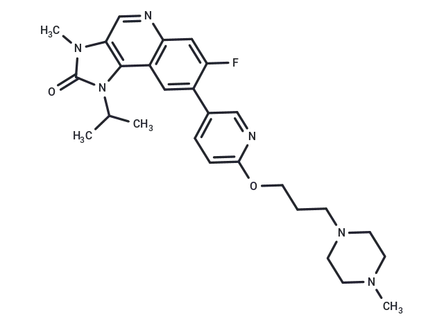 – O=C1N(C=2C=NC=3C=C(F)C(=CC3C2N1C(C)C)C=4C=NC(OCCCN5CCN(C)CC5)=CC4)C