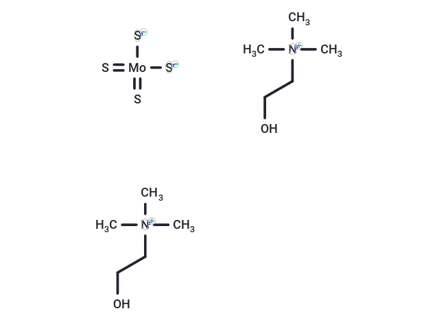 – ATN-224 (Bis(choline)tetrathiomolybdate) inhibits SOD1 activity in endothelial cells, an effect that is dose dependent with an IC50 of 17.5±3.7 nM. ATN-224 is an oral Cu2+/Zn2+-superoxide dismutase 1 (SOD1) inhibitor.