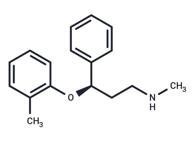– Atomoxetine (HSDB 7352) is a selective norepinephrine inhibitor that may cause an increase in blood pressure by increasing norepinephrine concentrations in peripheral sympathetic neurons .Atomoxetine is a highly selective antagonist of presynaptic norepinephrine transporters with little or no affinity for other norepinephrine receptors or other neurotransmitter transporters or receptors, but has little or no affinity for 5- hydroxytryptamine transporter. Atomoxetine selectively inhibits reuptake of norepinephrine and can be used to treat adolescents with ADHD and chronic tics.