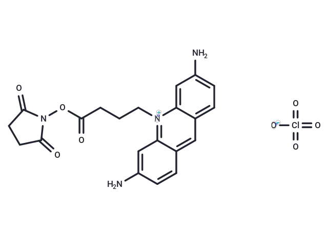 – O=C(ON1C(=O)CCC1=O)CCC[N+]=2C3=CC(N)=CC=C3C=C4C=CC(N)=CC42.O=Cl(=O)(=O)[O-]