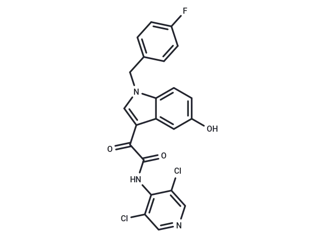 – O=C(NC=1C(Cl)=CN=CC1Cl)C(=O)C2=CN(C=3C=CC(O)=CC23)CC4=CC=C(F)C=C4