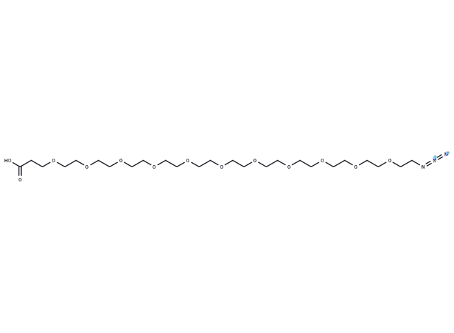 – Azido-PEG11-acid is a PEG-based linker for PROTACs [proteolysis-targeting chimeras], facilitating the connection of two essential ligands necessary for PROTAC molecule formation and enabling selective protein degradation via the ubiquitin-proteasome system within cells.
